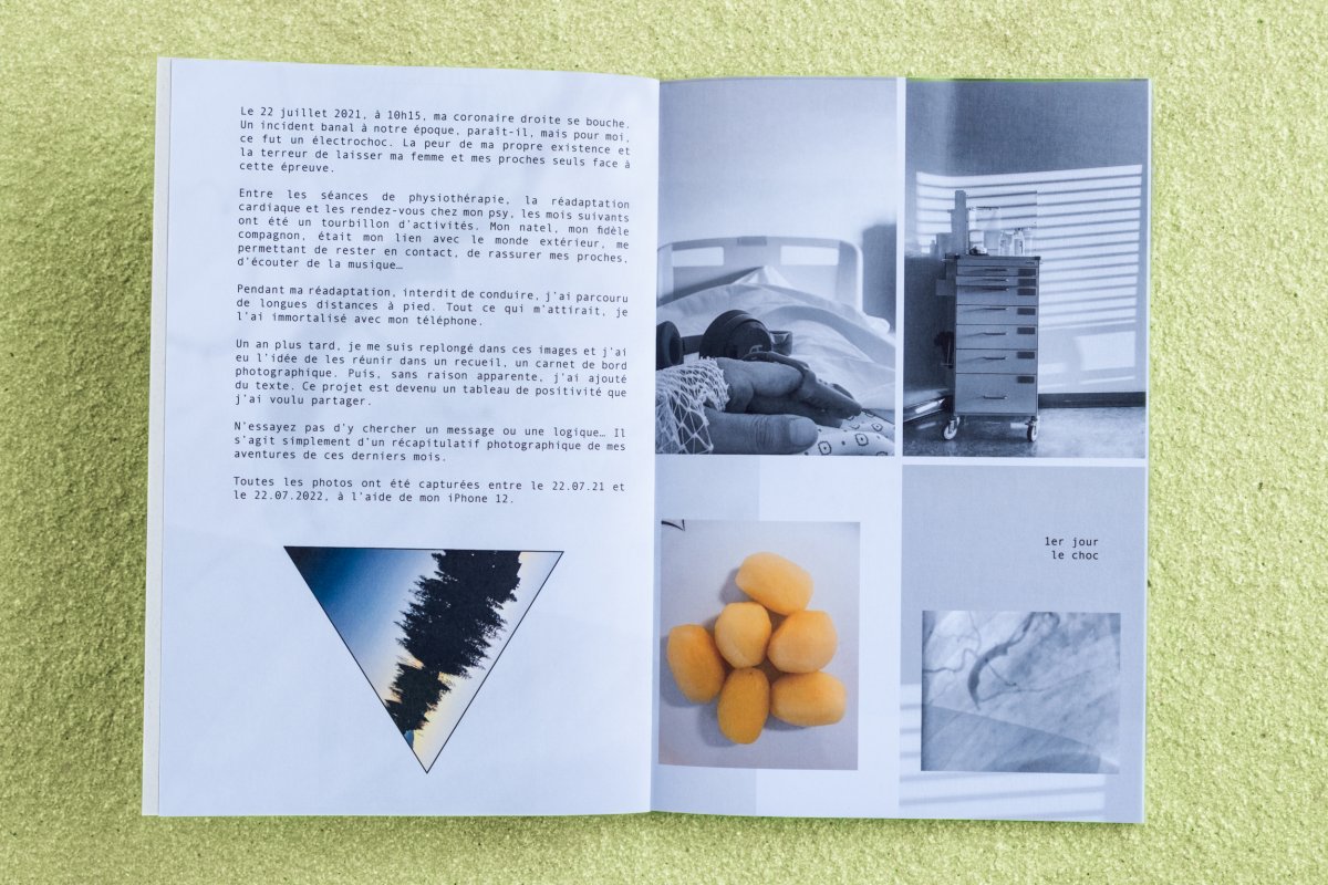Après un infarctus en juillet 2021, j’ai passé une année à marcher, à me reconstruire, et à photographier ce qui me touchait avec mon iPhone. Ce livre est un journal de bord visuel, un témoignage sincère, sensible et lumineux sur la lente reprise du souffle, du corps et du regard.